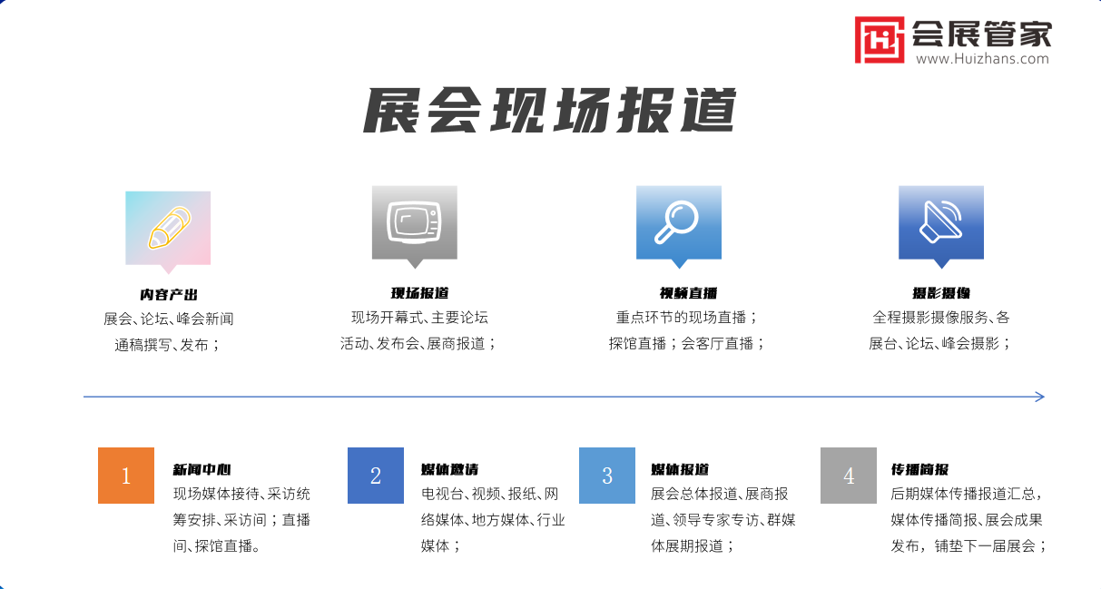 会展管家(huizhans.com)平台是上海鹏空信息科技有限公司旗下平台,平台于2017年正式上线。致力于打造“一站式会务会展综合信息服务平台”,区别于传统会展平台,会展管家平台全面囊括国内会务、活动、展会展览以及产业各延伸类别和项目;包括旗下已开通全国34个省级地方站群。